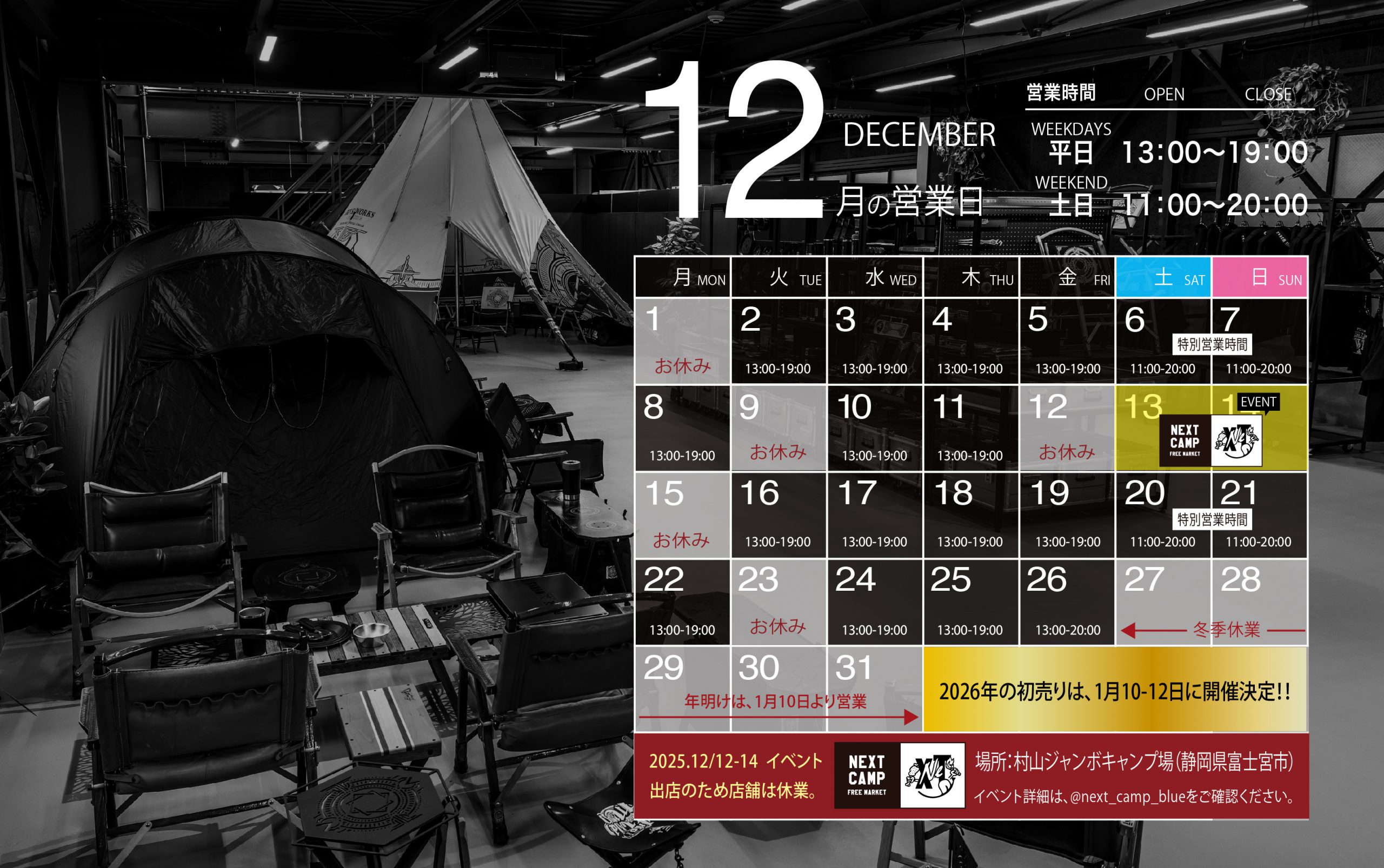 12月13-14日 NEXT CAMP FREE MARKET
